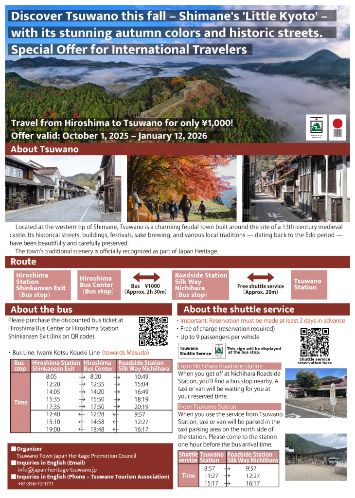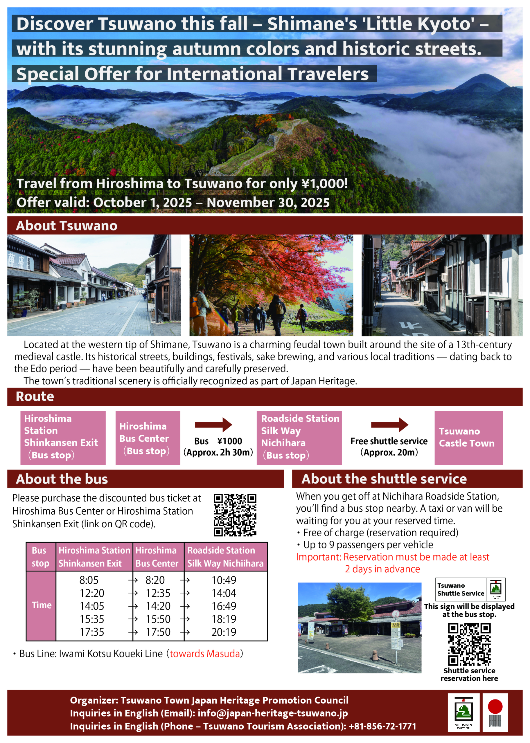 Free Shuttle Service from Roadside Station to Tsuwano Town Center: