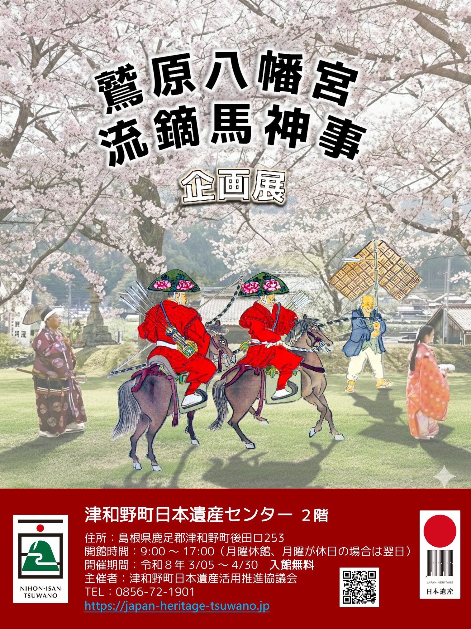 To celebrate this exciting event, the Tsuwano Japan Heritage Center is holding an exposition on Washibara Hachimangu Shrine, the history of Tsuwano Yabusame, and the traditions of the Ogasawara School of Yabusame.