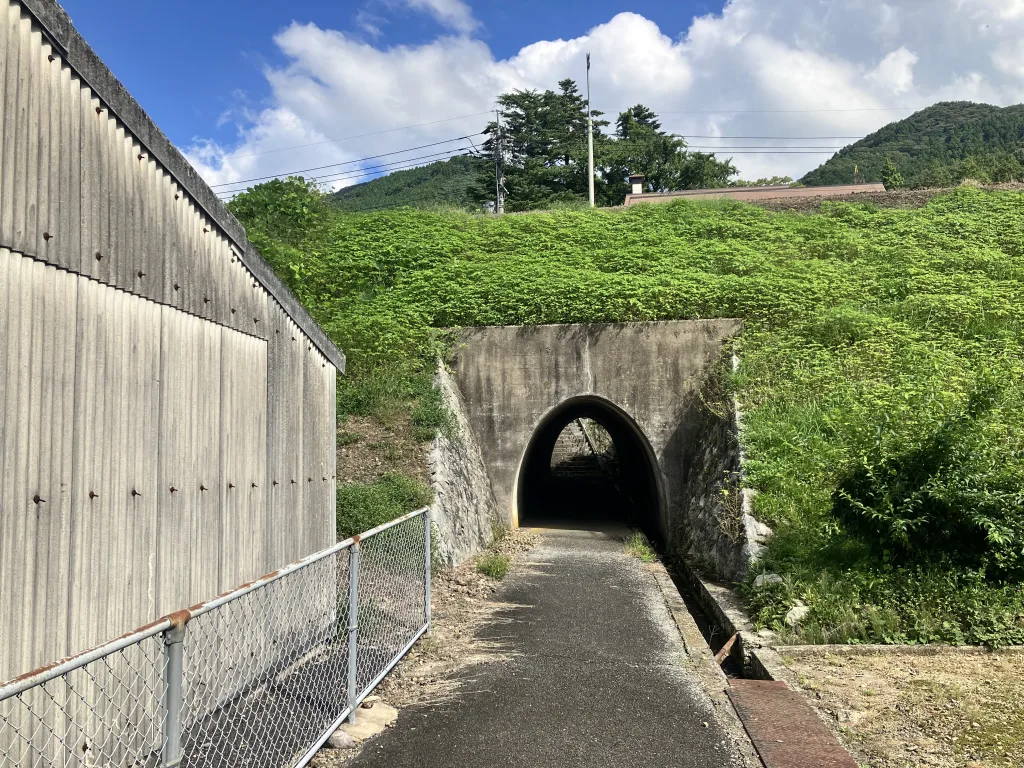 先に人が通れるほどのトンネルになっていますが、大正期の山口線工事のための盛り土で参道がふさがれるためにトンネルとしたものです。(車社会前にできたため人しか通れないトンネルになったと思われます。)