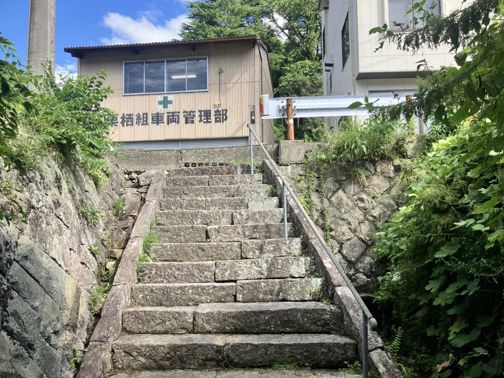 津和野駅から太鼓谷稲成方面に向けて県道13号を進み太鼓谷稲成へ右折する30m程手前を左に曲がります。(車でも曲がれますが、その先のトンネルが通れません。参拝は徒歩でお願いします。)